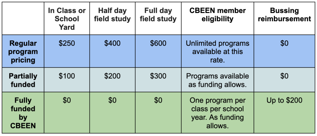 For the 2025-26 school year, each teacher with a current CBEEN membership is eligible for one fully funded, and two partially funded Wild Voices programs. There is a limited amount of funding available and will be on a first-come, first-serve basis.